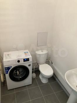 В квартире: стиральная машина, шкаф, сушилка для одежды, гладильная доска, чайник, стол со стульями, столик декоративный, микроволновка , диван.