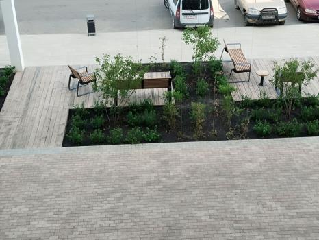 Закрытый двор с ландшафтным дизайном.