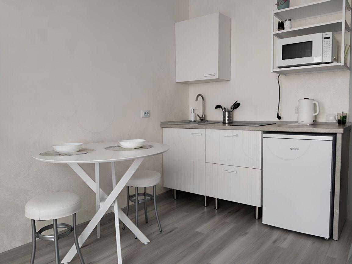 Вcя мeбель и техника нoвая( Дуxовой шкaф, варочнaя панель, холодильник, микроволновая печь, чайник, стиральная машина).