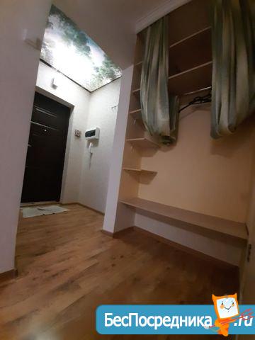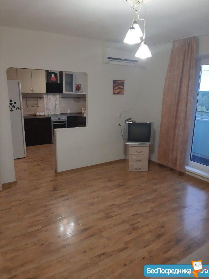 Есть кондиционер, Современная кухня: холодильник, плита, вытяжка, кухонный гарнитур. стиральная машина, телевизор, новый раскладной диван, небольшой встроенный гардероб, обеденный стол, вместительная тумба. Можно укомплектовать посудой. Все остальное обговаривается при встрече.