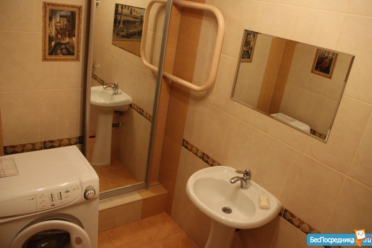 Ванная: новая стиральная машина, сантехника в отличном состоянии, кафель.