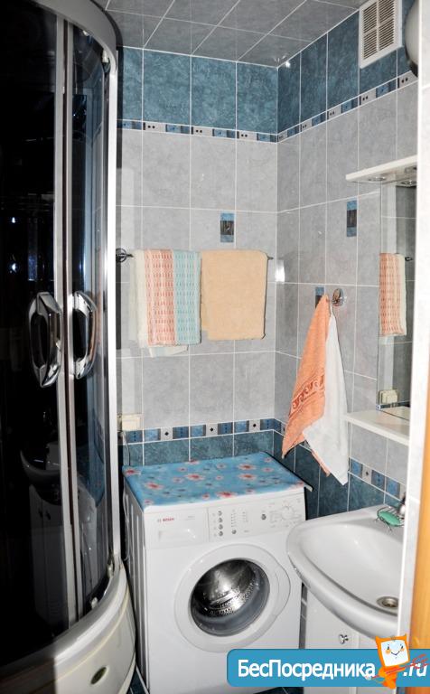 Ванная: стиральная машина, сантехника в отличном состоянии, кафель.