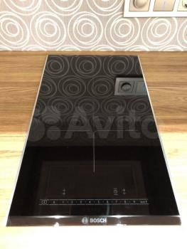 Кухонный гарнитур с встроенной бытовой техникой: посудомоечная машина, холодильник, свч, индукционная варочная поверхность, вытяжка