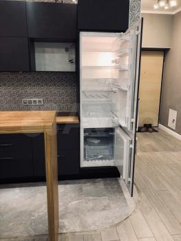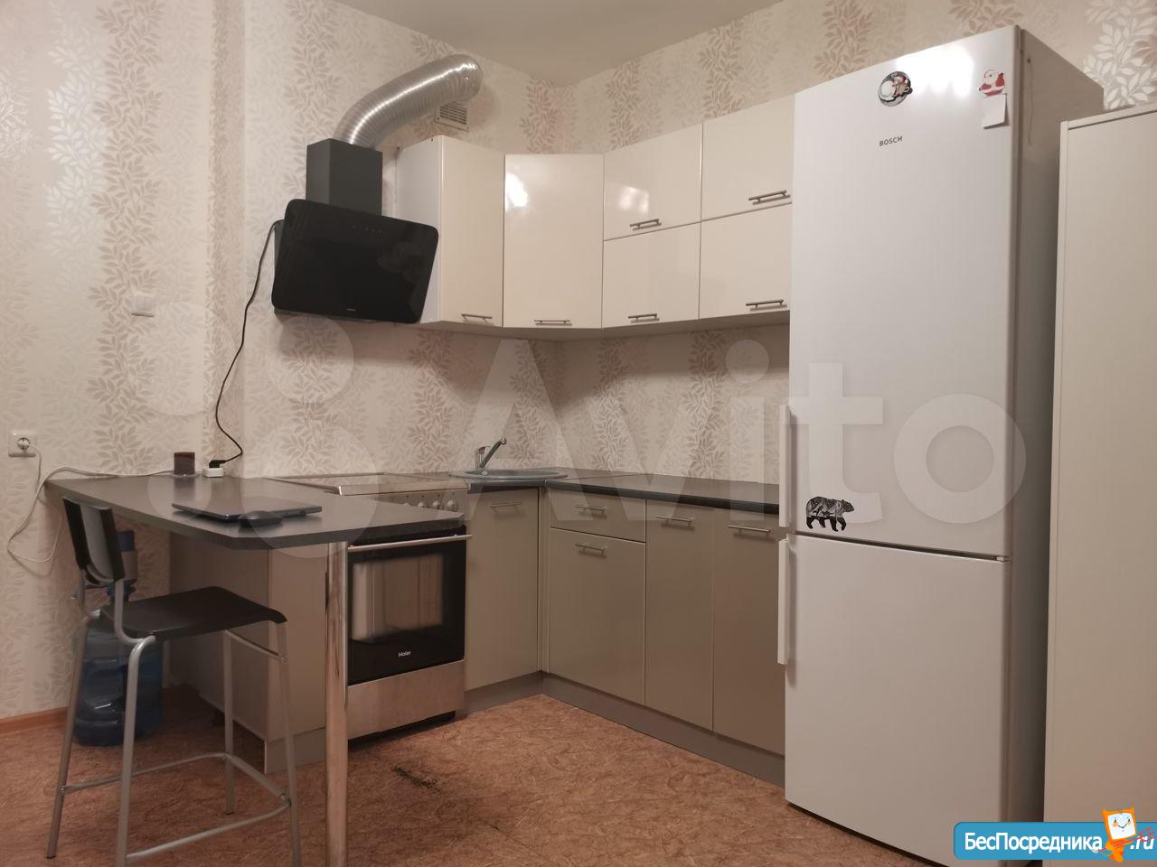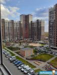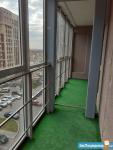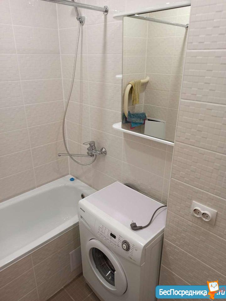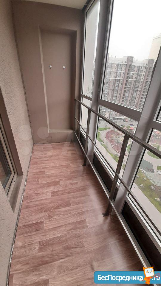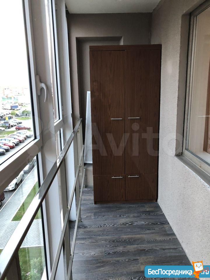 Есть вся необходимая мебель и техника (большой диван, кухонный гарнитур, стол, шкаф, холодильник, электроплита с духовным шкафом, вытяжка, стиральная машина). Балкон с панорамным остеклением.