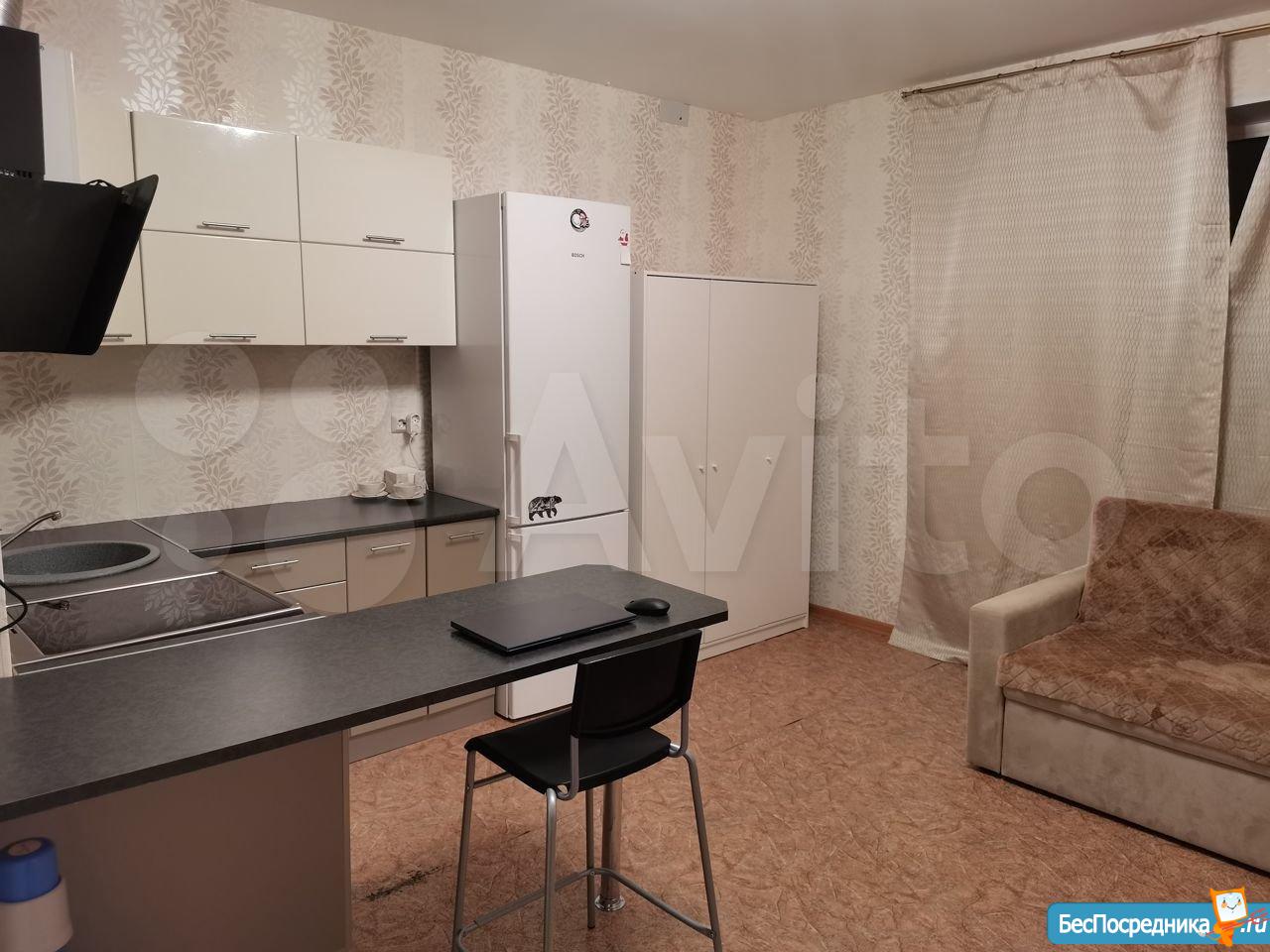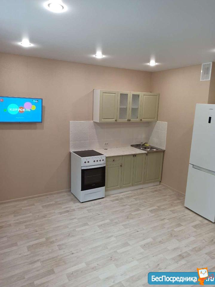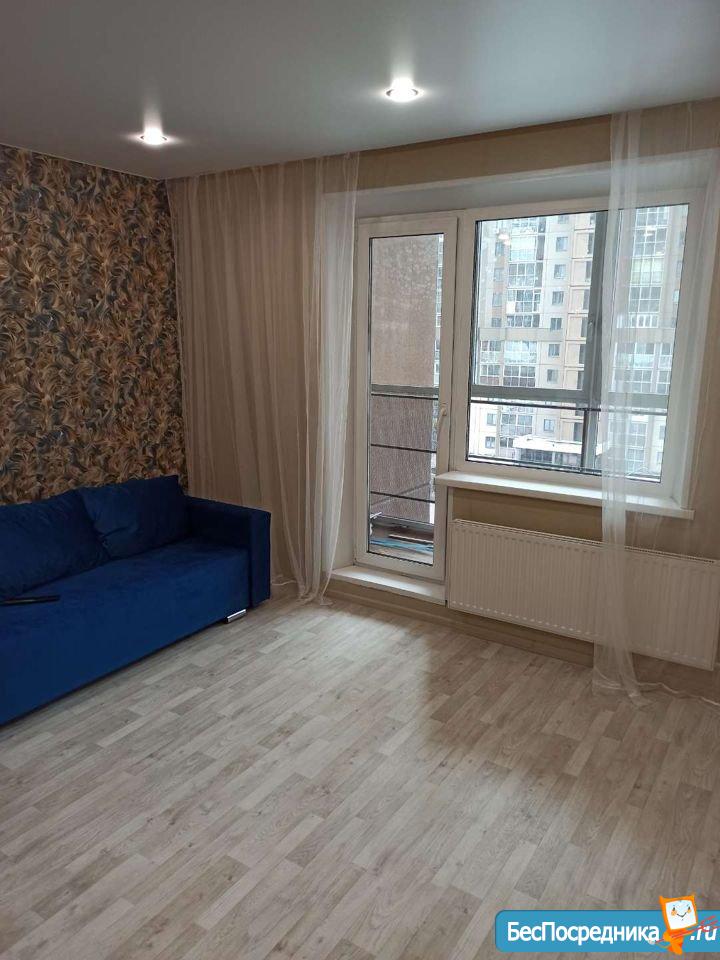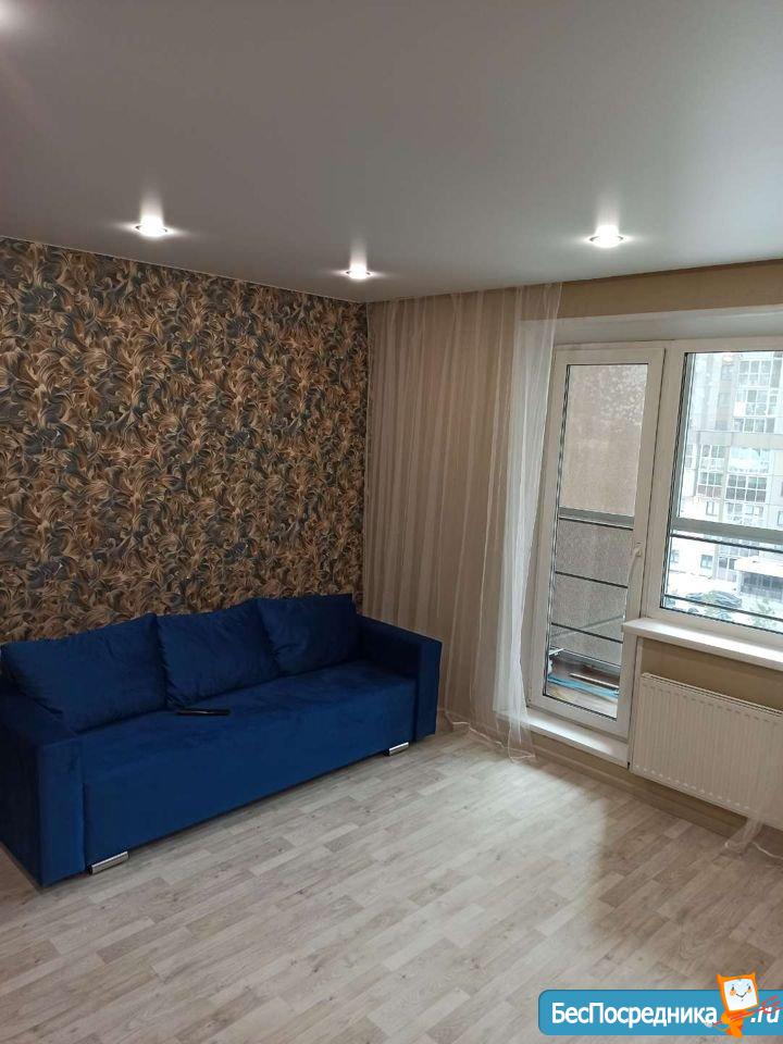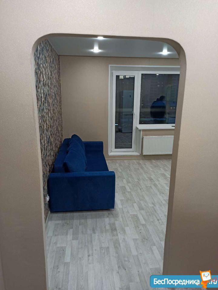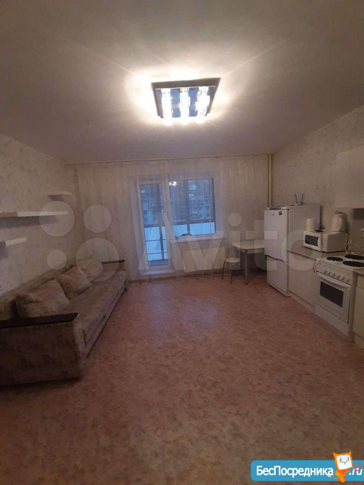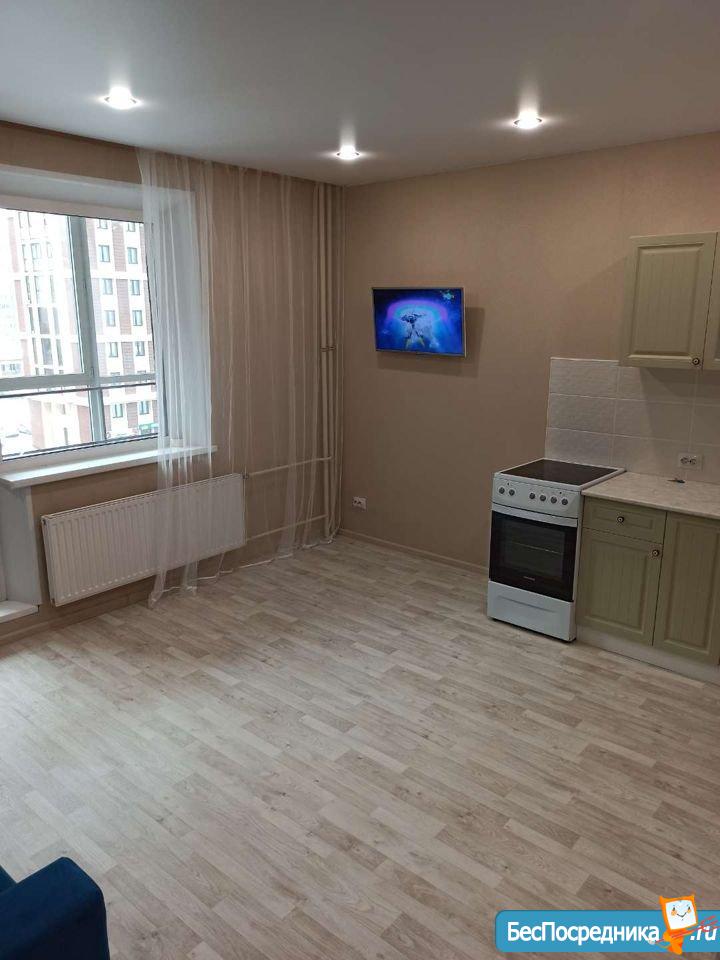 Сдам новую квартиру-студию в микрорайоне Ярославский на длительный срок. Шикарный вид из окна. Рядом футбольное поле, гипермаркет Лента, супермаркет Spar. Оплата 10 000 рублей + свет, вода по счетчикам.