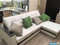 Новый раскладной угловой диван из экокожи с удобной нишей для постельного белья;