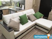 Новый раскладной угловой диван из экокожи с удобной нишей для постельного белья;