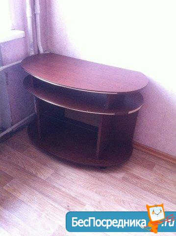 В комнате кровать, тумба под тв, столик, шкаф.