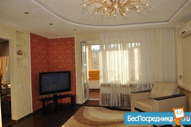 В картире только сделан евроремонт, огромная утепленная лождия, есть вся новая мебель и современная необходимая бытовая техника (телевизор, стиральная машинка, холодильник, водонагреватель, утюг, фен), есть интернет. Квартира находится на пересечение ул. Бр. Кашириных и ул. Чайковского, это в 5-7 минутах езды от центра.