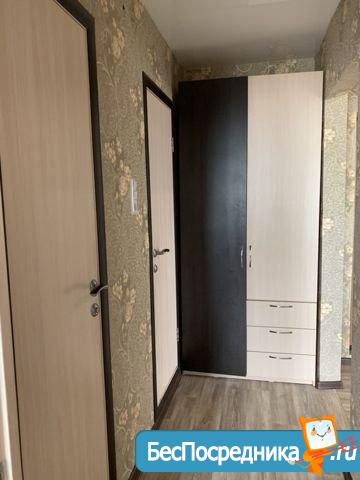 Квартира чистая. В наличии кровать, два шкафа, кух. гарнитур, телелевизор, холодильник, эл плита, стиральная машина, микроволновка