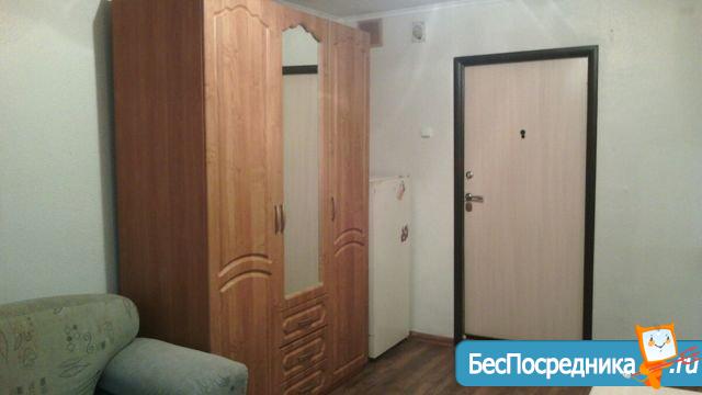 Комната в общежитии. В комнате вода, канализация, мебель, ТВ, евроокно, метал. дверь.