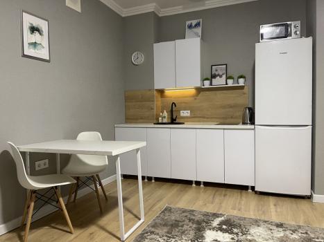 Квартира-студия. Сдается на длительный срок.Есть 2 шкафа, комод, кресло, диван(раскладывается ), стиральная машинка. Закрытый двор с видеонаблюдением, консъерж. Свет и вода оплачивается отдельно по счетчикам.Залог на время проживания