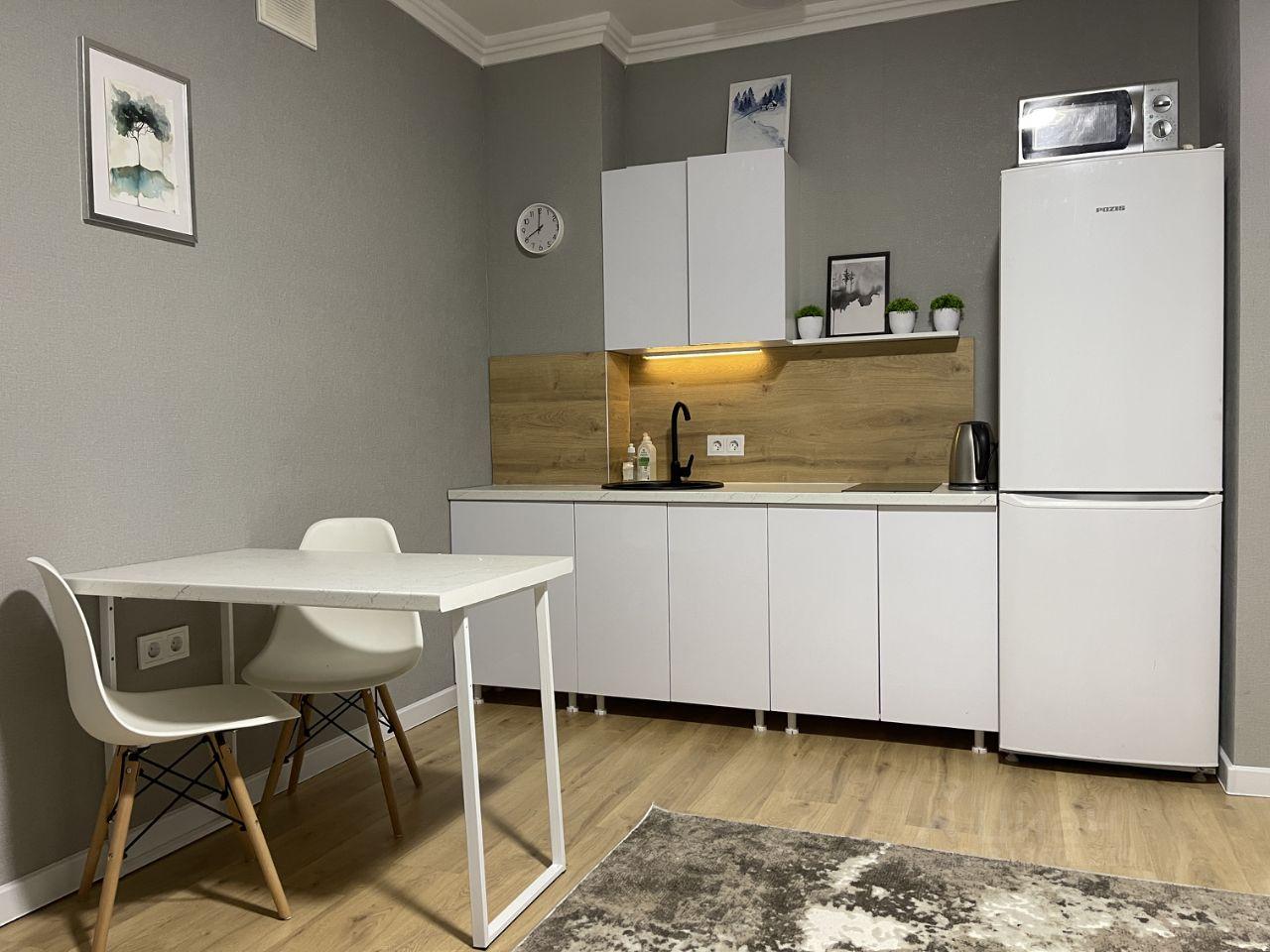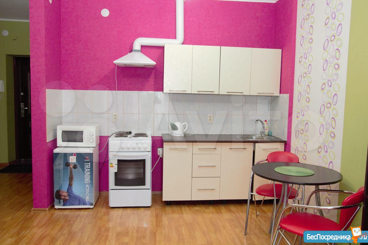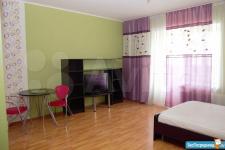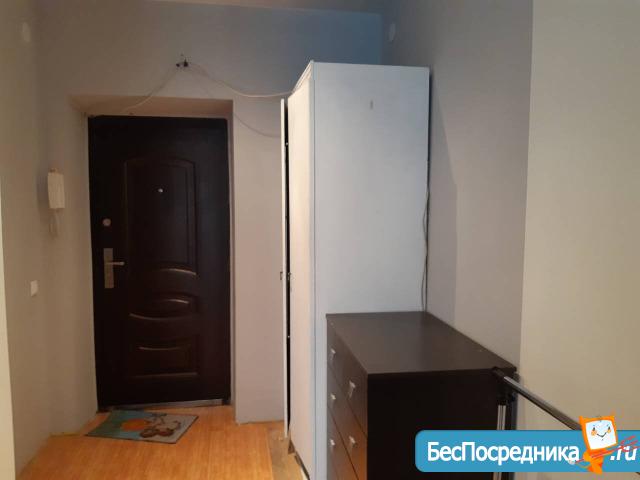 Квартира-студия. Сдается на длительный срок.Есть 2 шкафа, комод, кресло, диван(раскладывается ), стиральная машинка, чайник. Закрытый двор с видеонаблюдением, консъерж.