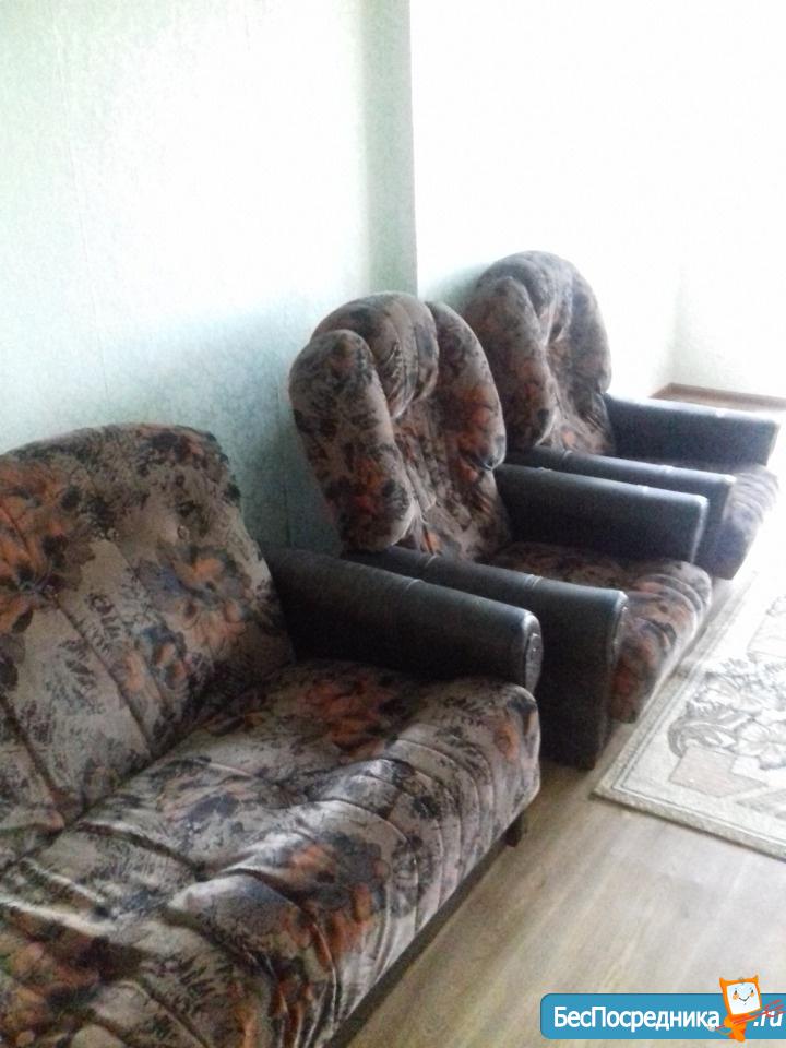 Из мебели: диван, кресла,большой плательный шкаф, кухонный гарнитур, холодильник,телевизор ,стиральная машинка.