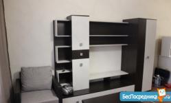 Мебeль: кухонный гарнитур, диван в студии, спальный гарнитур в спальне, журнальный столик, стол. Техника: современная плита, двухкамерный холодильник, стиральная машина автомат, электро-чайник, микроволновая печь, телевизор.