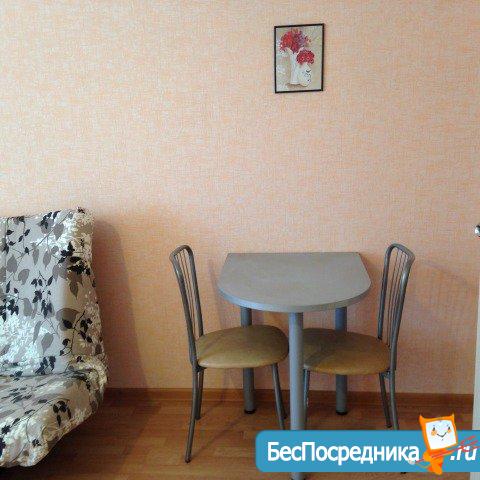 Сдам студию. Квартира с мебелью, светлая, уютная и чистая. Имеется диван, стол с двумя стульями, плита, мультиварка, телевизор, холодильник, кух. гарнитур, стиральная машинка. Коммунальные платежи оплачиваются дополнительно.