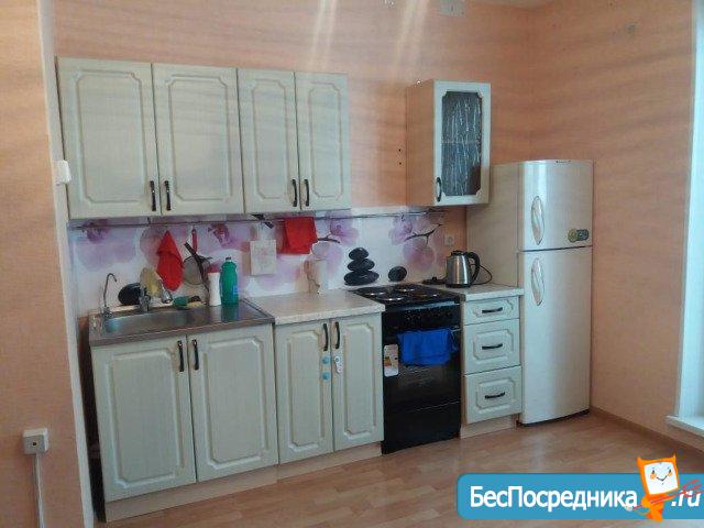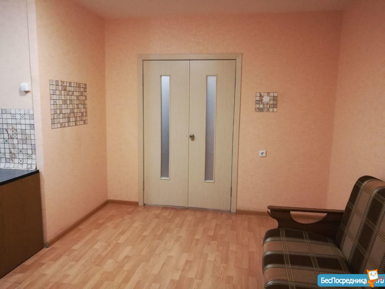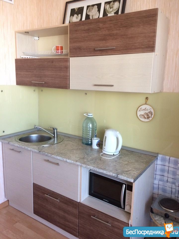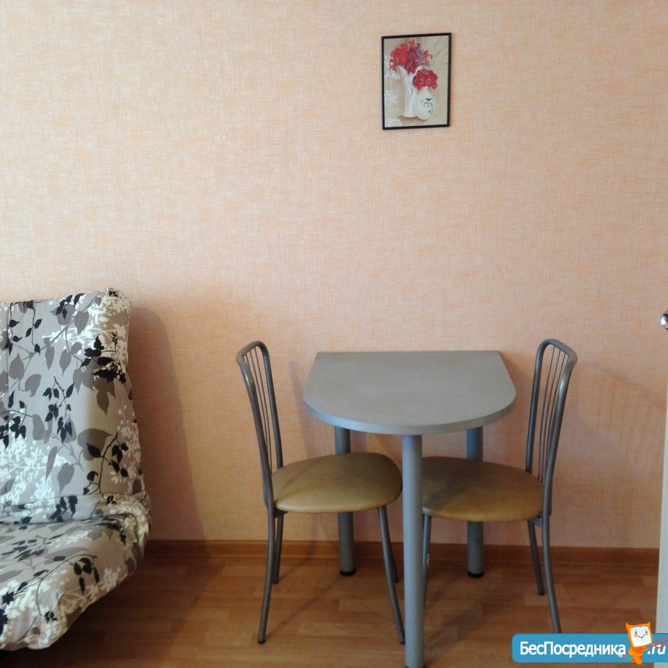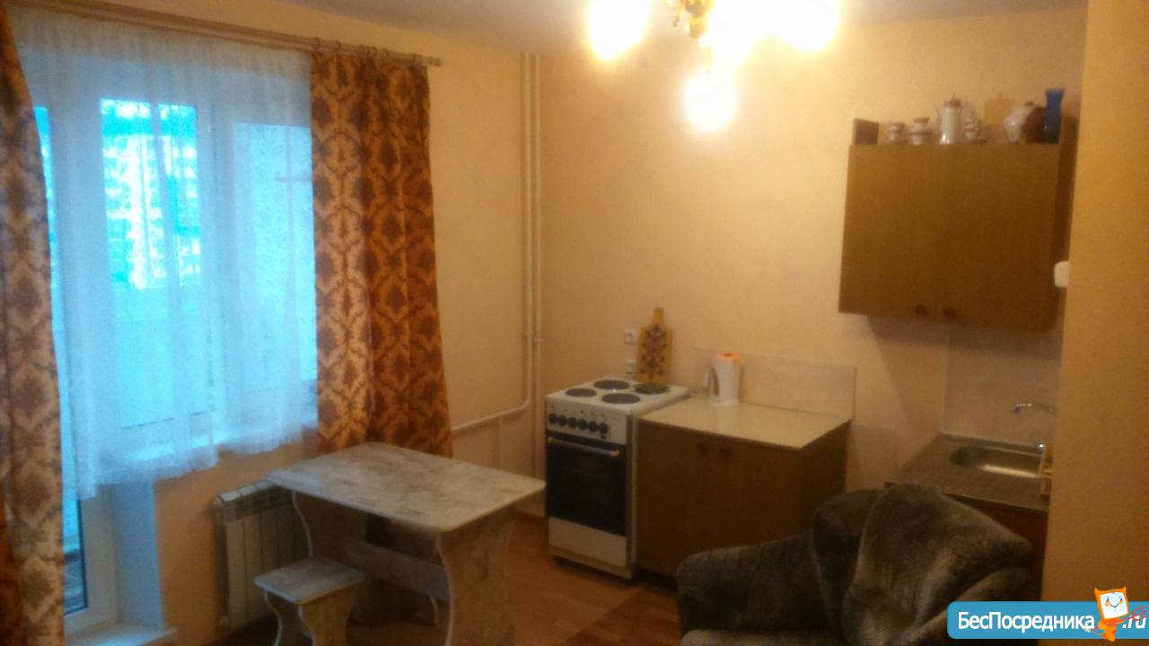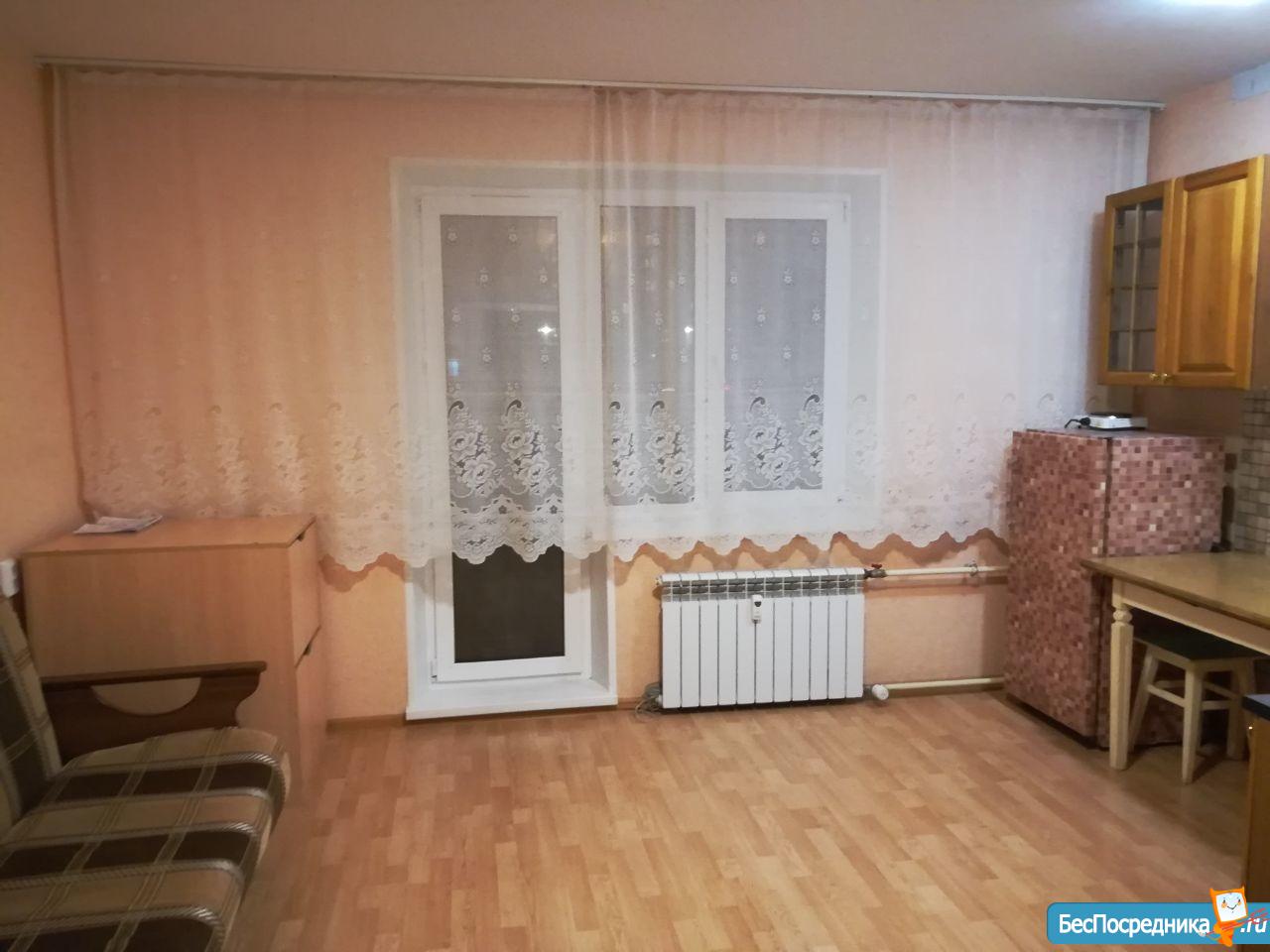 Студия с мебелью, холодильником, плита. Есть вся необходимая посуда, душевая кабина. Лоджия застеклена. Рядом лесок, магазины. Удобно одному человеку, студенту или работающему, можно семейной паре. На длительный срок! Без комиссий!!!
