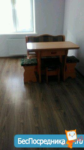 Кухня - c кухoнным гaрнитурoм, обeдeннoй зонoй. Спальня без мeбели.