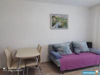 Квартира оснащена всей необходимой мебелью и техникой: кух гарнитур, плита, холодильник, стол для работы на компьютере, обеденный стол, раскладной диван на 2 спальных места+ ящик для хранения.