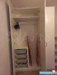 В спальне располагается 2х спальная кровать(160*200)с матрасом Askona, стеллаж, вместительный шкаф.