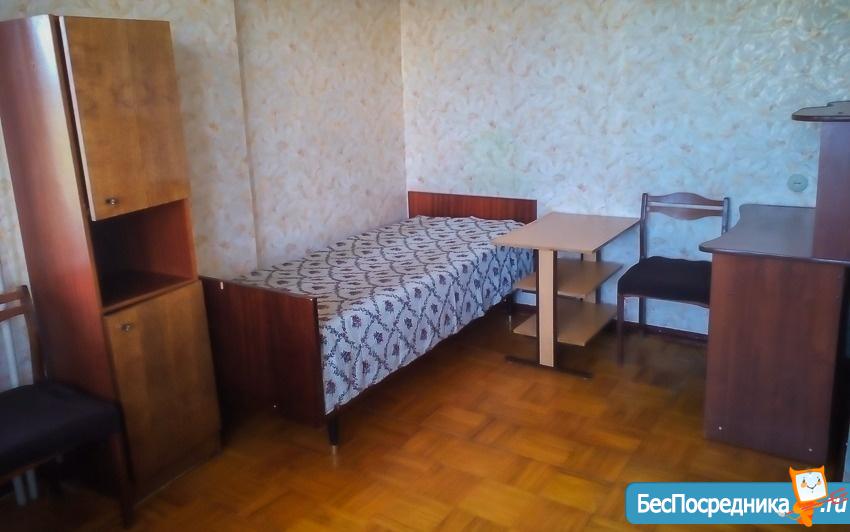 Комната в 3х комнатной квартире. В одной живет взрослая женщина, вторая тоже пока свободна, исключтельно без животных. В комнате стоит кровать, шкаф, стул и стол. Имеется отдельный двухкамерный холодильник, телевизор