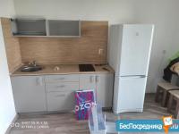 3. Комната: новый кухонный гарнитур с 2-хкомфорочной стеклокерамической поверхностью, эл.духовой шкаф, холодильник, эл.чайник, вытяжка, большой ТВ. Новый диван с пружинным блоком, раскладная конструкция. Стенка и большой шкаф для хранения вещей. Стол, табуреты. Батарея с теплорегулятором. По запросу: микроволновая печь, утюг.