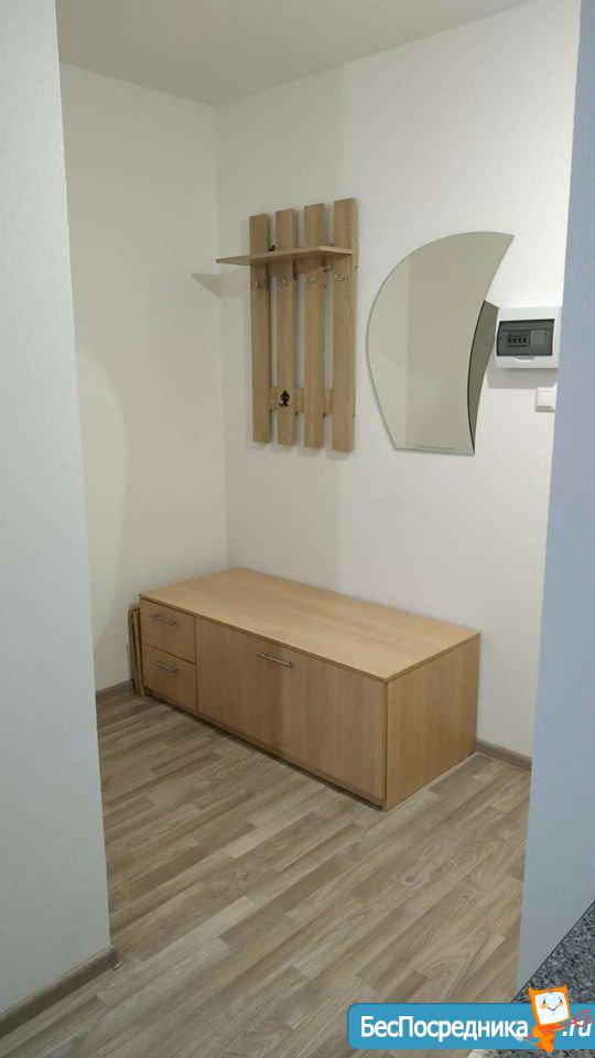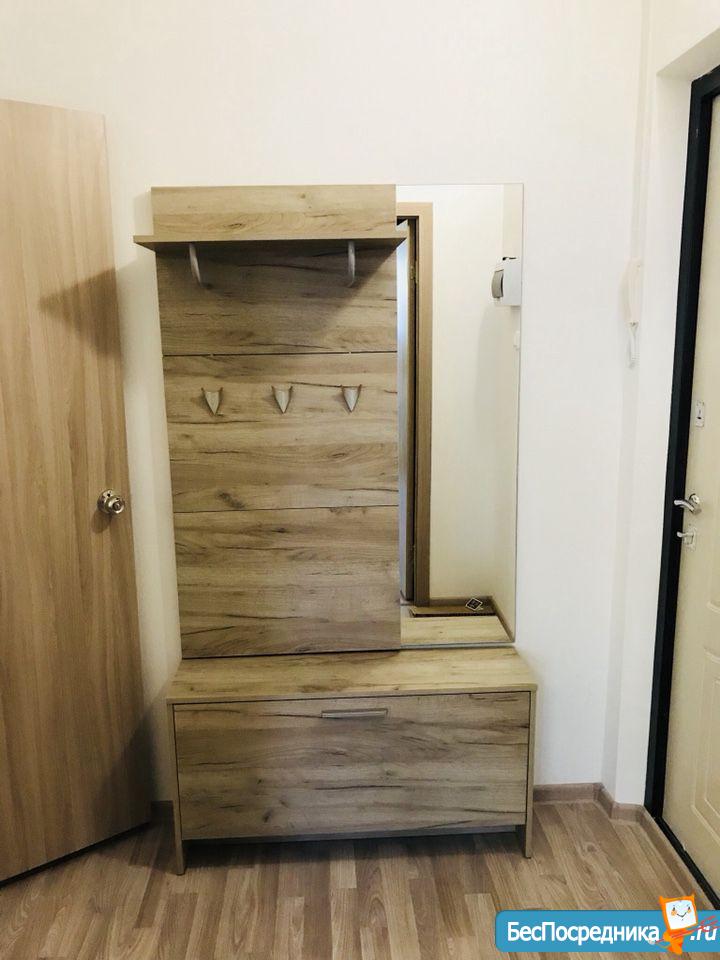 1. Прихожая: вешалка для одежды с зеркалом, обувница-новый комплект, розетка для различных нужд.