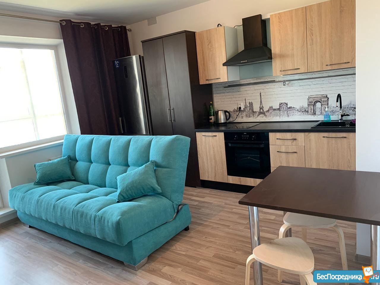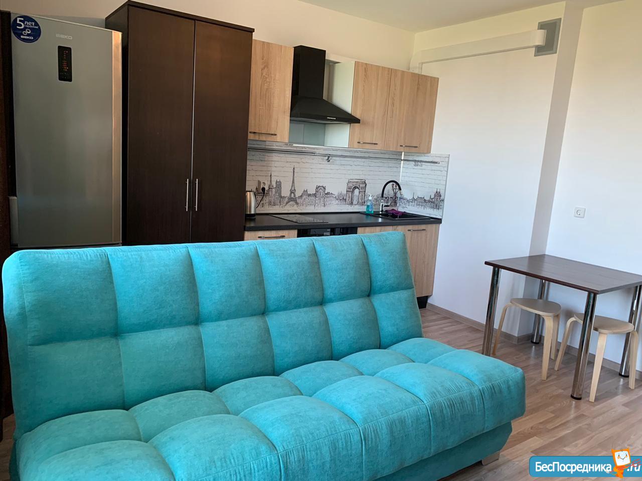Сдам квартиру - студию на амз в ЖК Ярославский. В новом доме, сдан месяц назад. В квартире ни кто не проживал, Вы будете первым. Вся мебель и техника новая. Холодильника на фото нет, как договоримся привезём. Собственник .