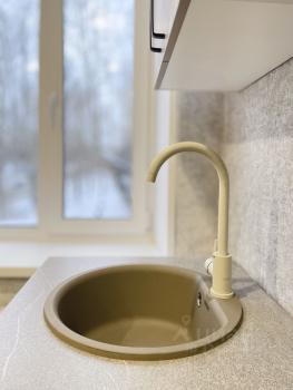кухонный гарнитур со встроенной варочной поверхностью и духовым шкафом, холодильник, микроволновая печь, электрический чайник, фильтр для воды кувшин, заварник, обеденная зона на 4 персон;